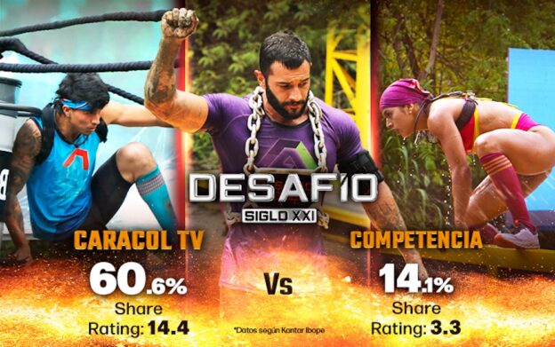 En su último capítulo, el Desafío Siglo XXI de Caracol Televisión marcó 14.4 puntos de rating y 60.6% de share. Esta es la audiencia más alta para un episodio final del formato en los últimos diez años. El reality, que celebra 21 años al aire, desde su capítulo de estreno tuvo altas cifras:. El primer capítulo tuvo 12,9 puntos de rating, 56,3 % de share y un alcance de 17,7 %. Asimismo, a lo largo de sus 138 capítulos tuvo un promedio de 53 % de share y...