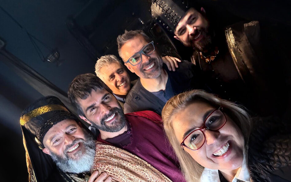 Roxana Rotundo de VIP 2000 TV con parte del elenco y Ricardo Álamo en el set de La última semana de Jesús