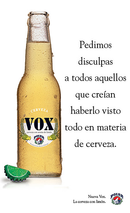 Una de las piezas gráficas creadas por Nölck Fischer América para la cerveza VOX de Polar