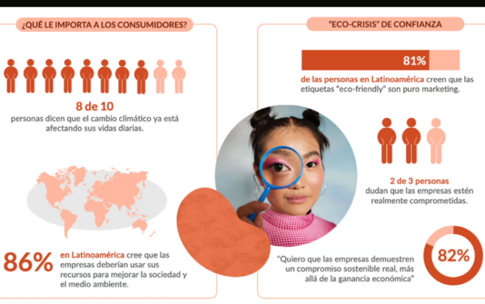 Uno de los hallazgos más contundentes del estudio es el alto nivel de escepticismo: 81% de las personas considera que “ser verde” es solo una estrategia de marketing y 2 de cada 3 dudan que las empresas estén realmente comprometidas con la sostenibilidad.