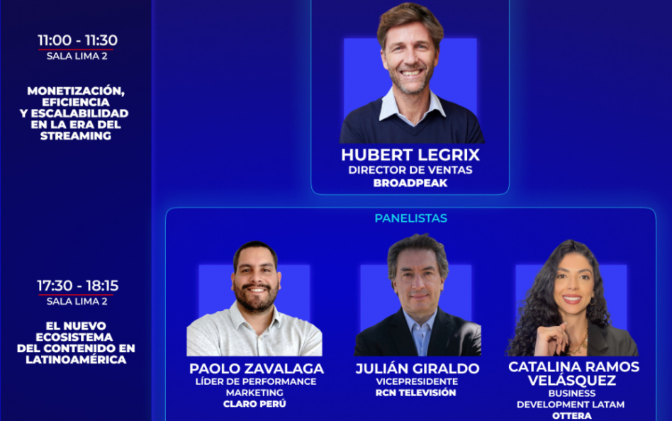 La agenda finalizará a las 5:30pm con el panel El nuevo ecosistema del contenido en Latinoamérica, que ampliará la discusión hacia una visión más integral del mercado. Este espacio reunirá a Paolo Zavalaga, líder de Performance Marketing de Claro Perú; Julián Giraldo, VP de RCN Televisión; y Catalina Ramos Velásquez, Business Development Latam de OTTera.