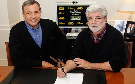 Bob Iger, CEO de Disney, y George Lucas en la firma del acuerdo