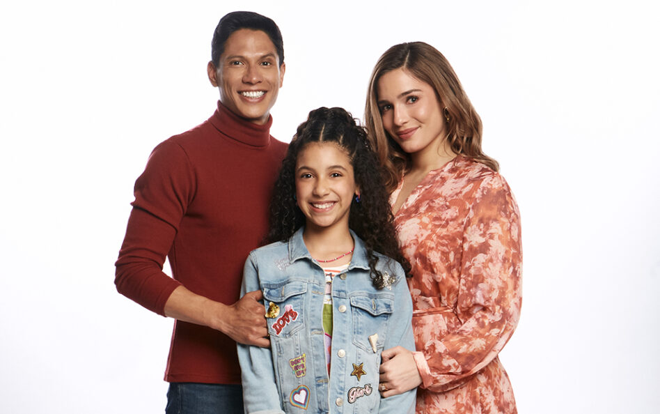 Los actores Andrés Silva y Vanessa Silva con Naima Luna, la actriz adolescente que encarna a Luz
