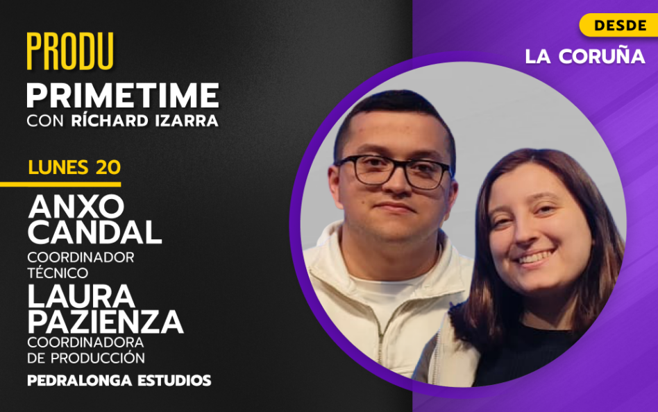 PRODU sigue manteniendo a la industria informada con entrevistas exclusivas. Este lunes 20 de abril llega una nueva edición de #PRODUprimetime con Ríchard Izarra desde La Coruña con Laura Pazienza, coordinadora de producción y Anxo Candal, coordinador técnico de Pedralonga Estudios.