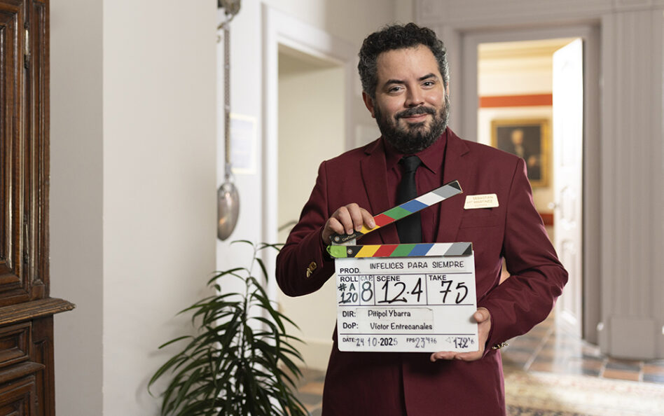 José Eduardo Derbez durante el claquetazo de Infelices para siempre que produce Onza en España para ViX